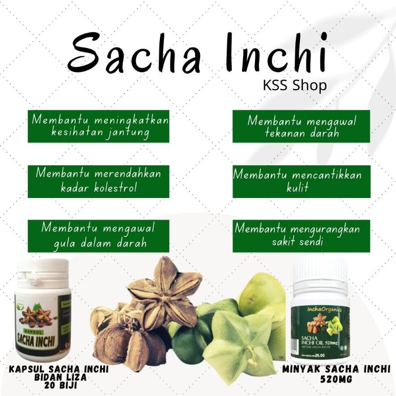 Nutrien-nutrien ini menjadi penyumbang kepada khasiat sacha inchi ini. Plukenetia Volubilis atau nama lainnya Sacha Peanut Incha Peanut atau Mountain Peanut ini sebenarnya merupakan sejenis kekacang yang berasal dari Peru Brazil. Kini produk daripada sancha inci ini telah dikomersilkan sebagai pemakanan tambahan yang amat memberi kebaikan kepada kesihatan.